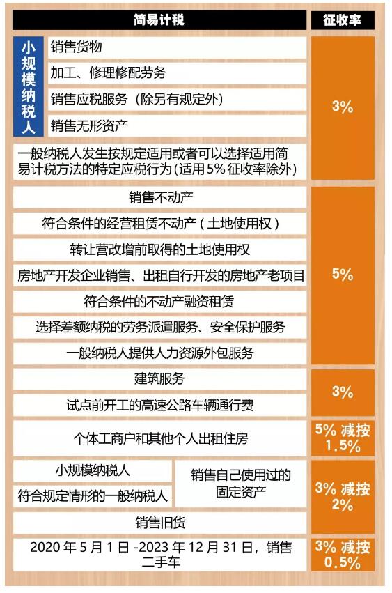 小規(guī)模及適用簡(jiǎn)易計(jì)稅的一般納稅人增值稅稅率表